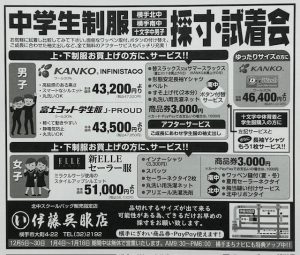 横手北中男子・女子 横手南中男子・女子 十文字中男子制服